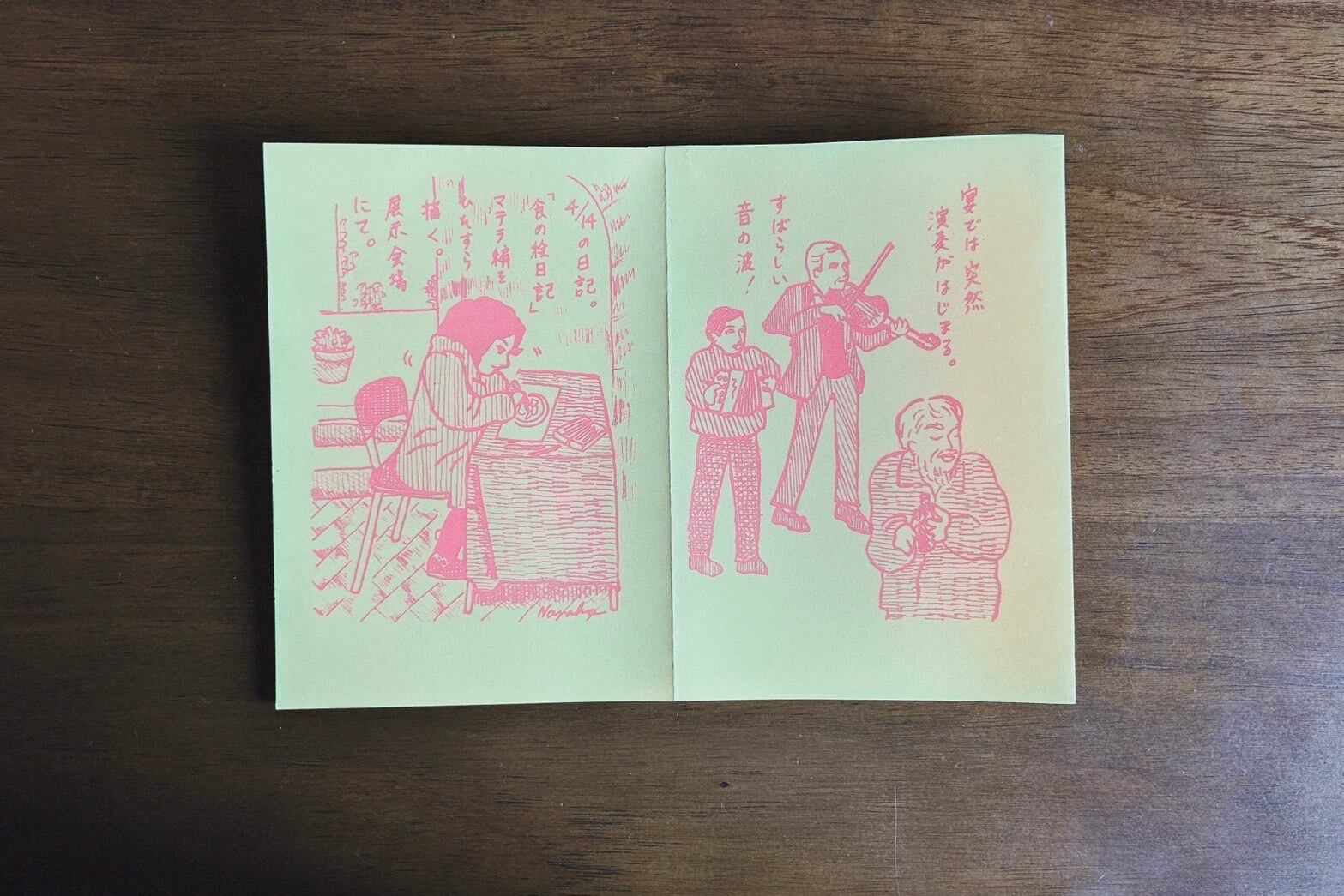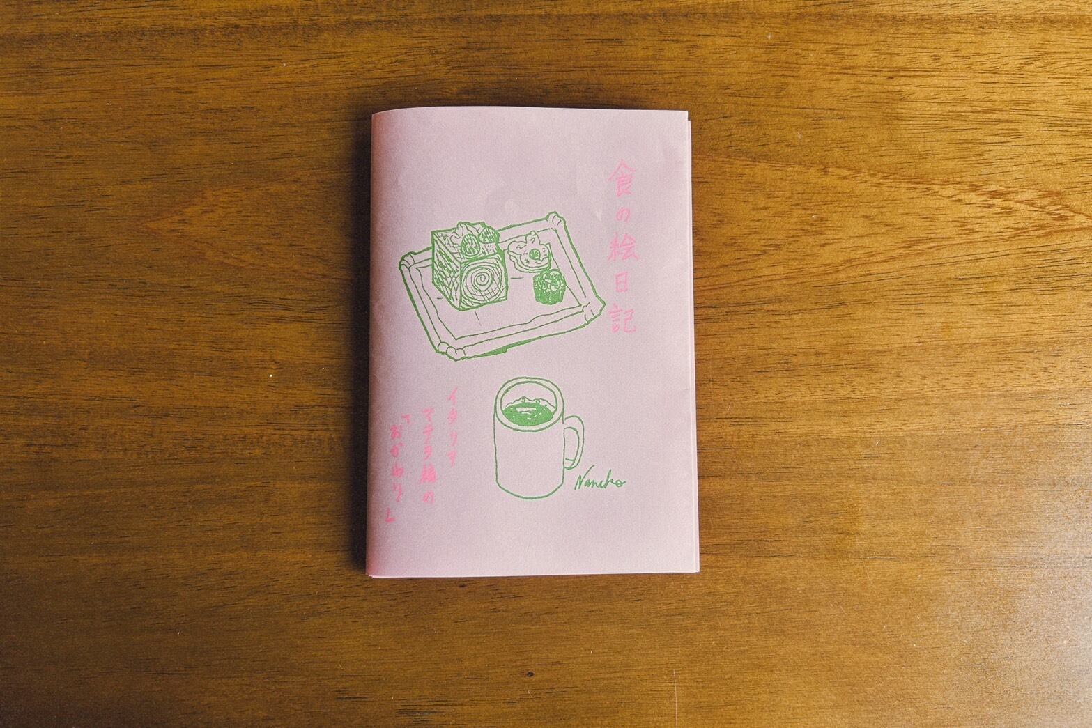 「食の絵日記シリーズ」全3冊に、リソグラフ印刷で製作した8つ折ZINE「旅の絵日記」と「食の絵日記おかわり」の2冊がおまけでついてきます!